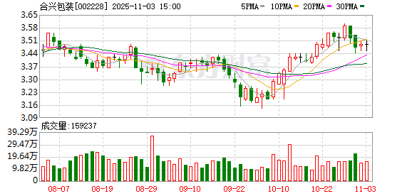 证券日报网讯 11月3日晚间,合兴包装发布公告称,截至2025年10月31日,公司第五期回购计划通过回购专用证券账户以集中竞价交易方式累计回购公司股份14,588,805股,占公司目前总股本1.20%。